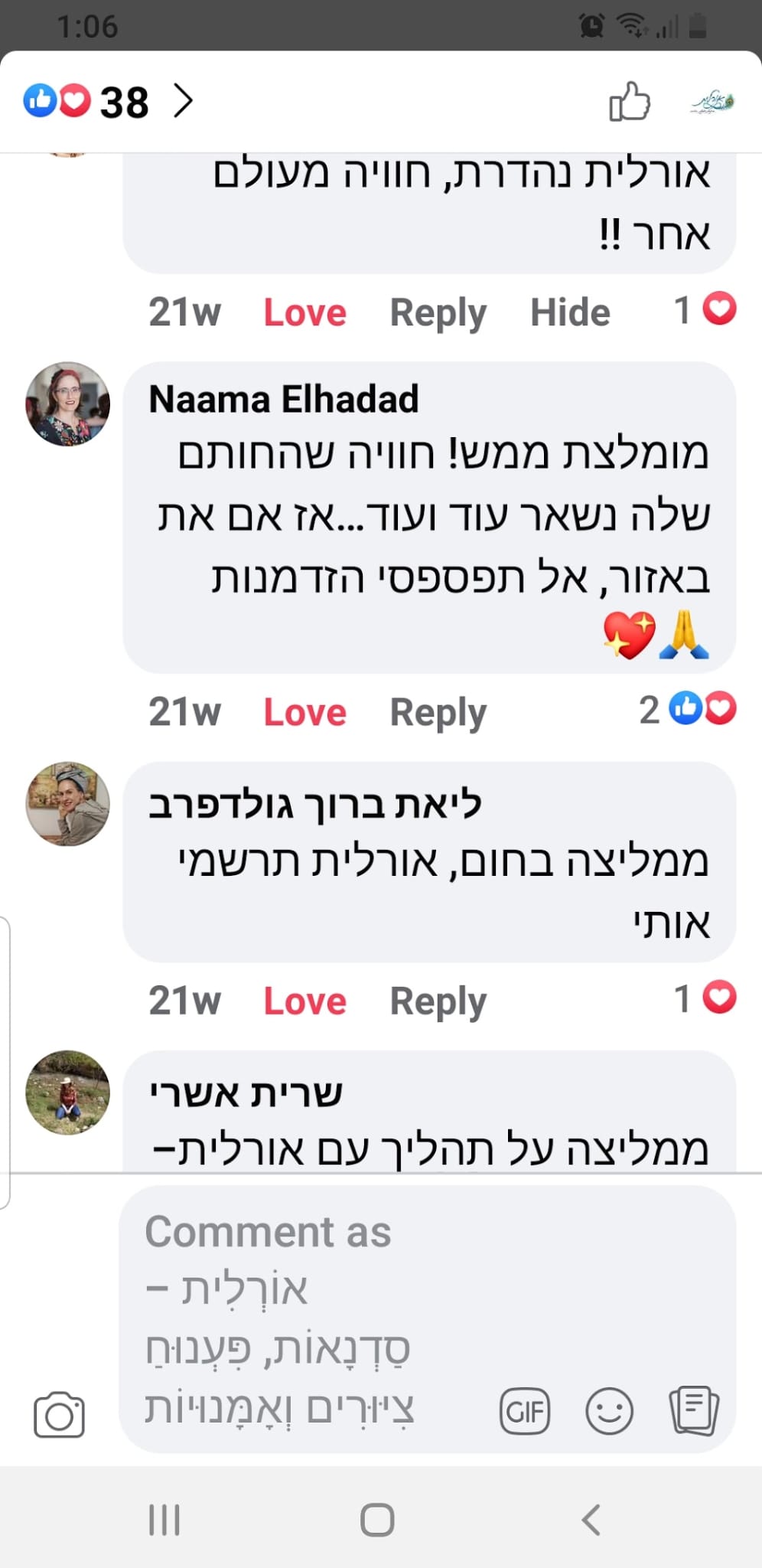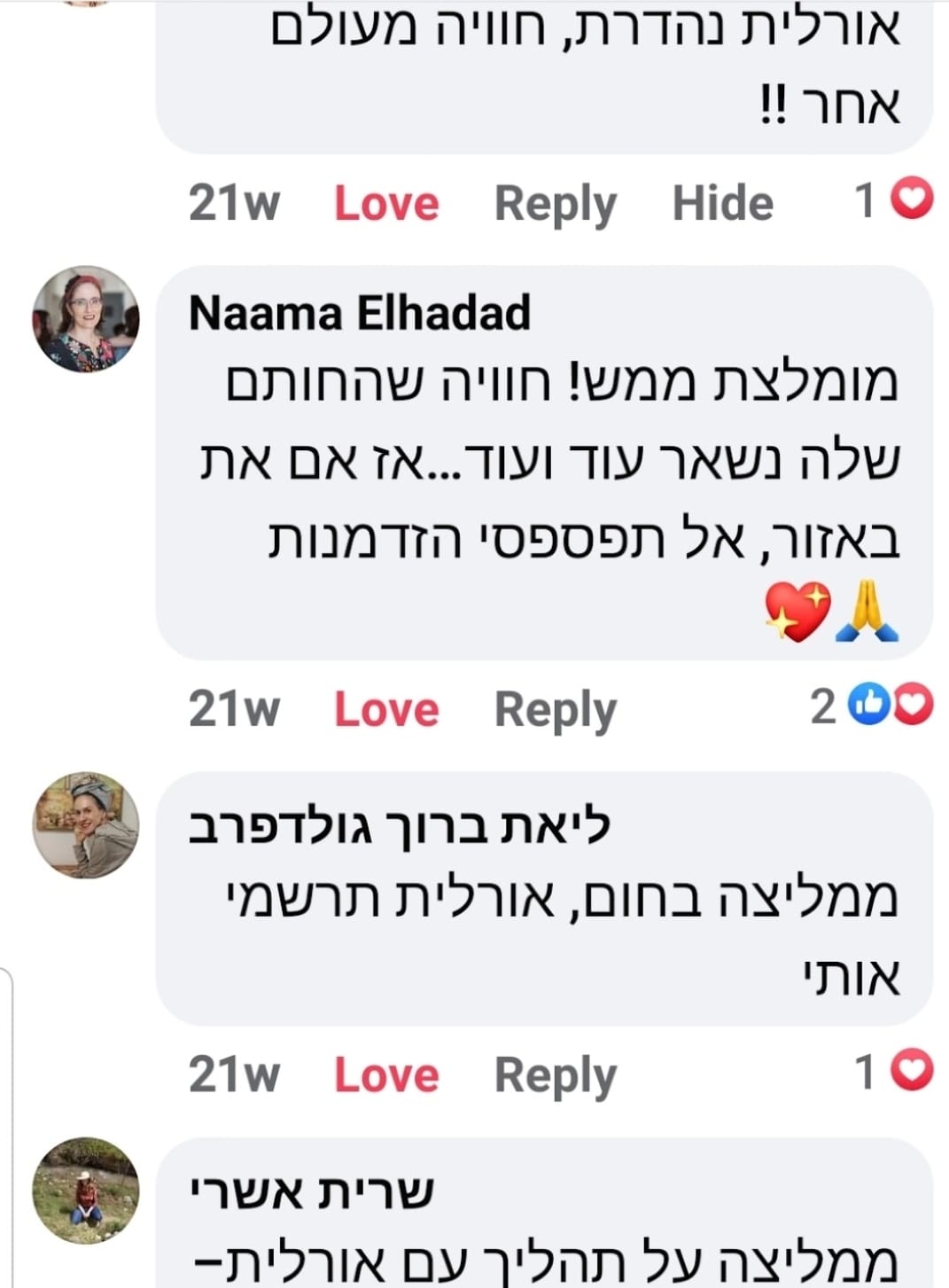אורלית יקרה ואהובה ❤️ את מלווה אותנו כבר כמה שנים, נכנסת לליבנו, את כל כולך אור ונתינה, עם מקצועיות שאין שניה לה.